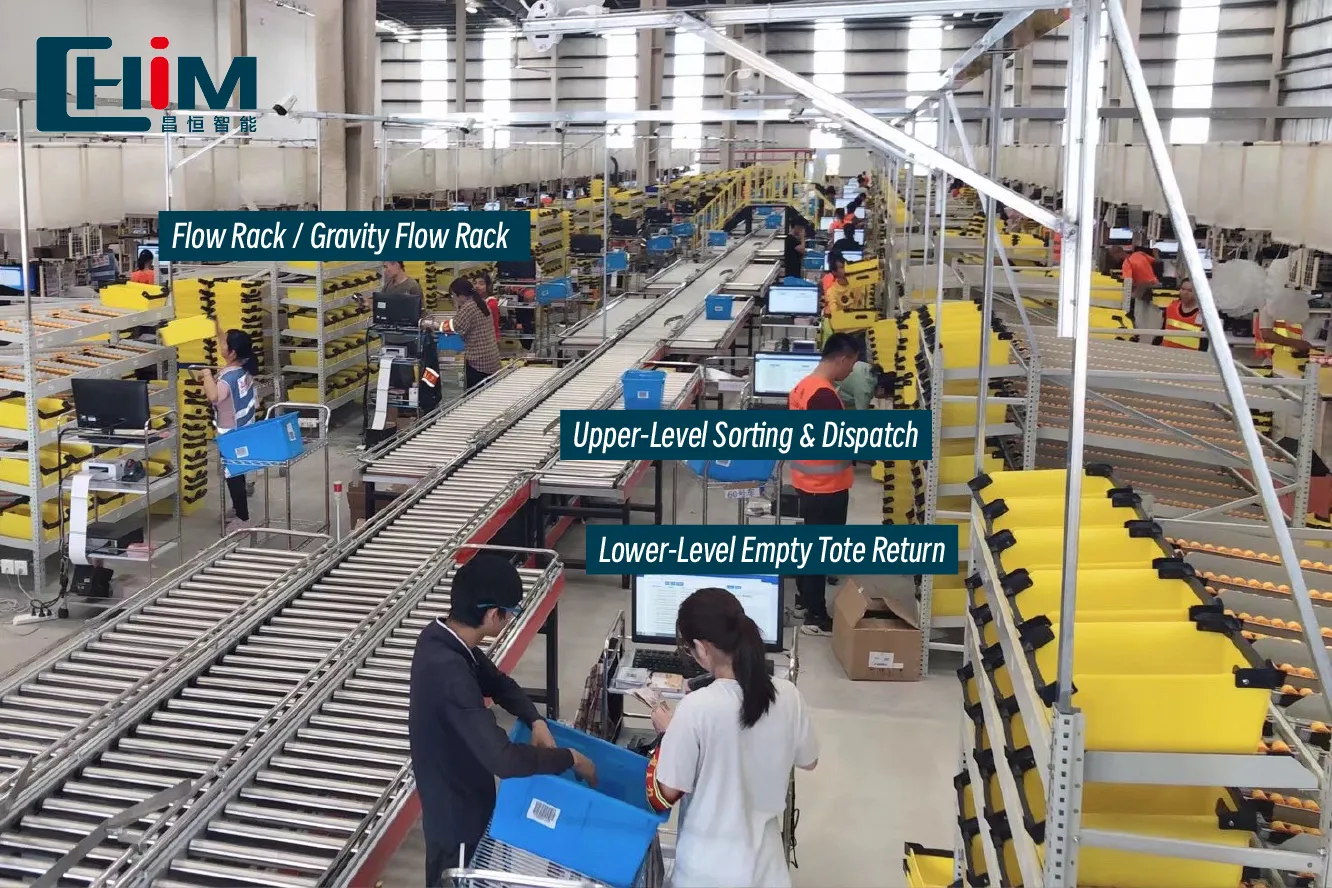 Phân loại dọc theo dây chuyền (bao gồm kiểm tra lại và đóng gói): Các hộp được phân loại di chuyển dọc theo dây chuyền lắp ráp. Các nhà phân loại lấy hàng từ các hộp doanh thu, quét từng mã một để chỉ định đơn đặt hàng và đặt chúng vào từng hộp trên giá lưu lượng. Việc xem xét và đóng gói liên tục được thực hiện. Sau khi hoàn thành, các hộp doanh thu trống được đặt trên dây chuyền băng tải trở lại cấp thấp hơn và vận chuyển trở lại khu vực phân loại kho.